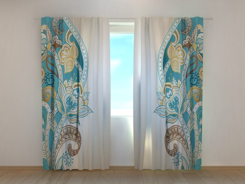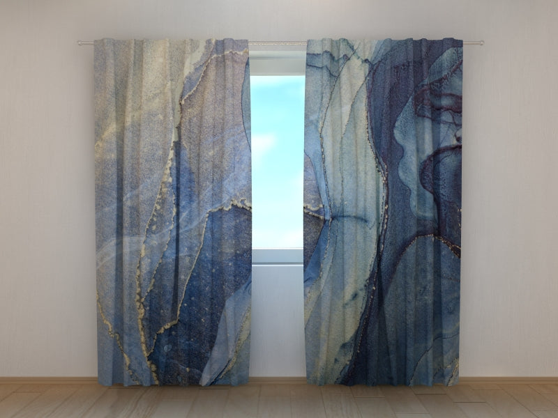 Photo Curtain Luxury Abstraction in Blue and Gold
