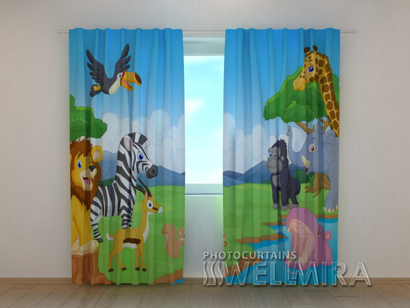 3D Curtain Cute African Animals