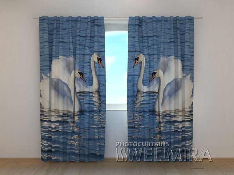 3D Curtain White Swans