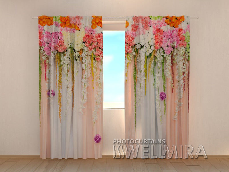 Photo Curtain Flower Lambrequins. Pink Spring