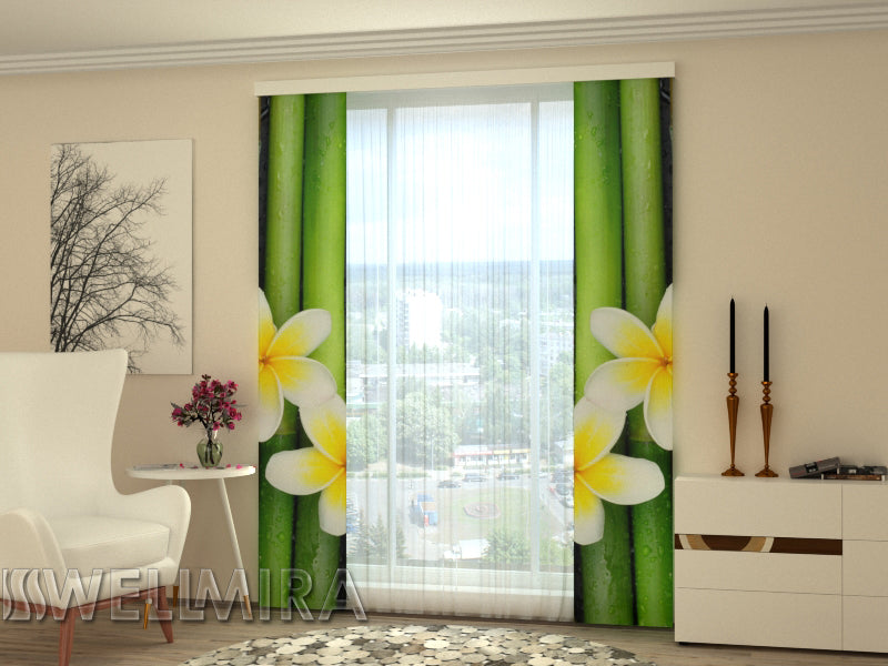 Set of 2 Panel Curtains Bamboo and Plumeria