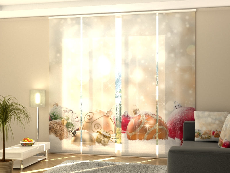Set of 4 Panel Curtains Christmas Lights and Snow