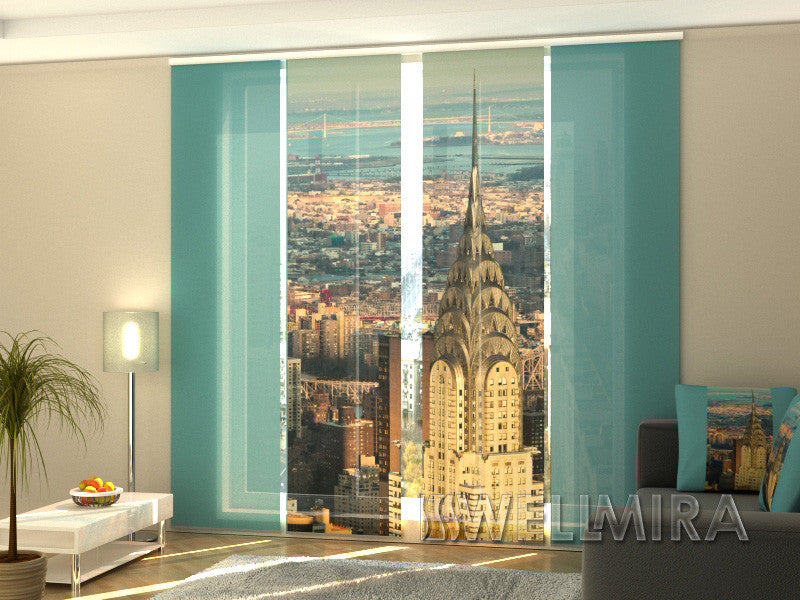 Panel curtains with photo prints, not only prevent the penetration of ultraviolet rays into the room, protecting the furniture from fading, but they also have a decorative function, becoming a highlight of the interior. With one hand movement a scowl outside turns into a marvelous flower glade, gorgeous panoramic view of Paris or a fabulous city.