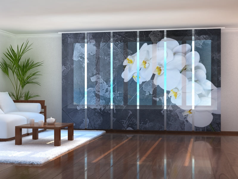 Set of 6 Panel Curtains Fresh Orchids on a Stone