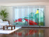 Panel curtains with photo prints, not only prevent the penetration of ultraviolet rays into the room, protecting the furniture from fading, but they also have a decorative function, becoming a highlight of the interior. With one hand movement a scowl outside turns into a marvelous flower glade, gorgeous panoramic view of Paris or a fabulous city.