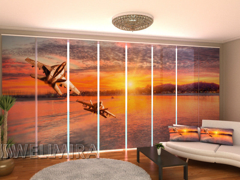 Set of 8 Panel Curtains Two Planes